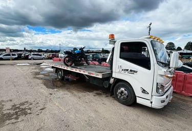 Atendemos Emergencias 24/7 con Grúas Equipadas para Motos, Vehículos y Carga.